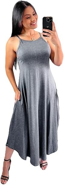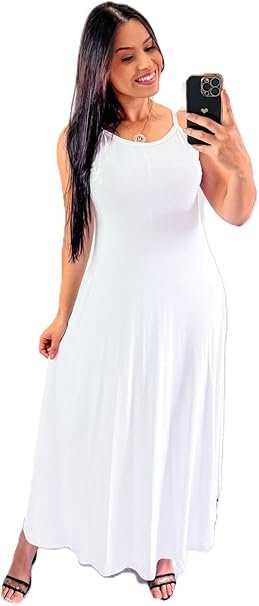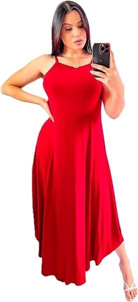 - DESIGN VERSÁTIL: Vestido longo com alças finas, perfeito para ocasiões casuais ou eventos formais, com caimento fluido e elegante