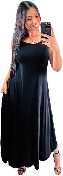 Elegância e conforto se unem neste vestido longo de alça com bolsos. Confeccionado em tecido macio e fluido, este vestido preto versátil é perfeito para diversas ocasiões. O corte amplo e soltinho proporciona movimento e caimento gracioso, enquanto as alças finas conferem um toque de delicadeza. Os bolsos laterais adicionam funcionalidade ao design sofisticado. O comprimento longo e a silhueta fluida favorecem diversos tipos de corpo, criando uma aparência alongada e elegante. Ideal para eventos casuais, passeios ou ocasiões semi-formais, este vestido pode ser facilmente acessorizado com sandálias, colares e pulseiras para criar diferentes looks. O tecido de alta qualidade garante conforto durante todo o dia, mantendo você elegante e à vontade em qualquer situação. Combine com uma jaqueta jeans ou blazer para um visual mais estruturado.