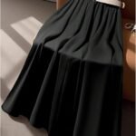 - Cintura alta elástica, evasê, saia midi de cor metálica sólida, vale a pena experimentar esta saia suavemente plissada para mulheres