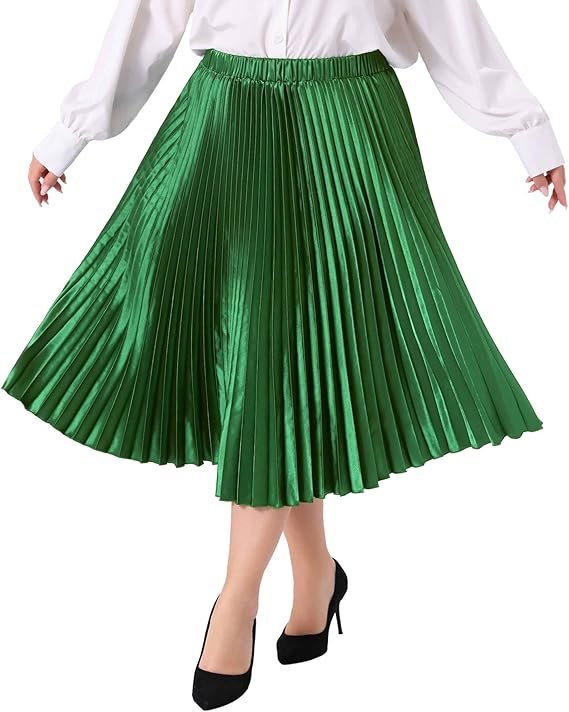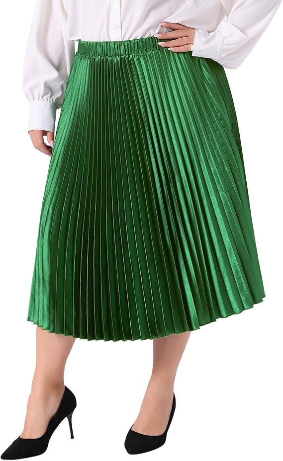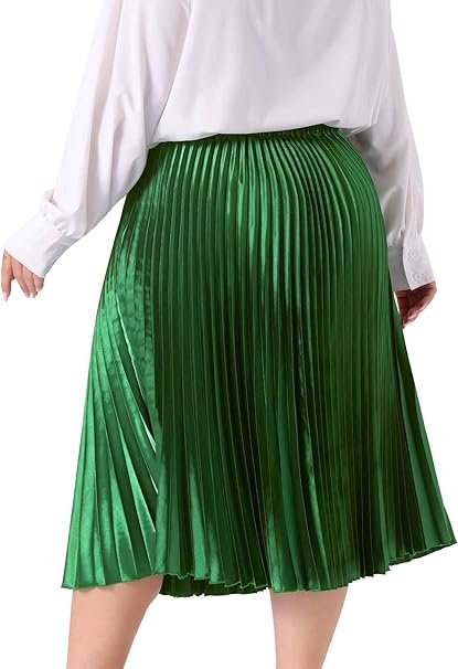 Agnes Orinda Saias plus size para mulheres, saia midi plissada de acordeão metálico com cintura alta elástica